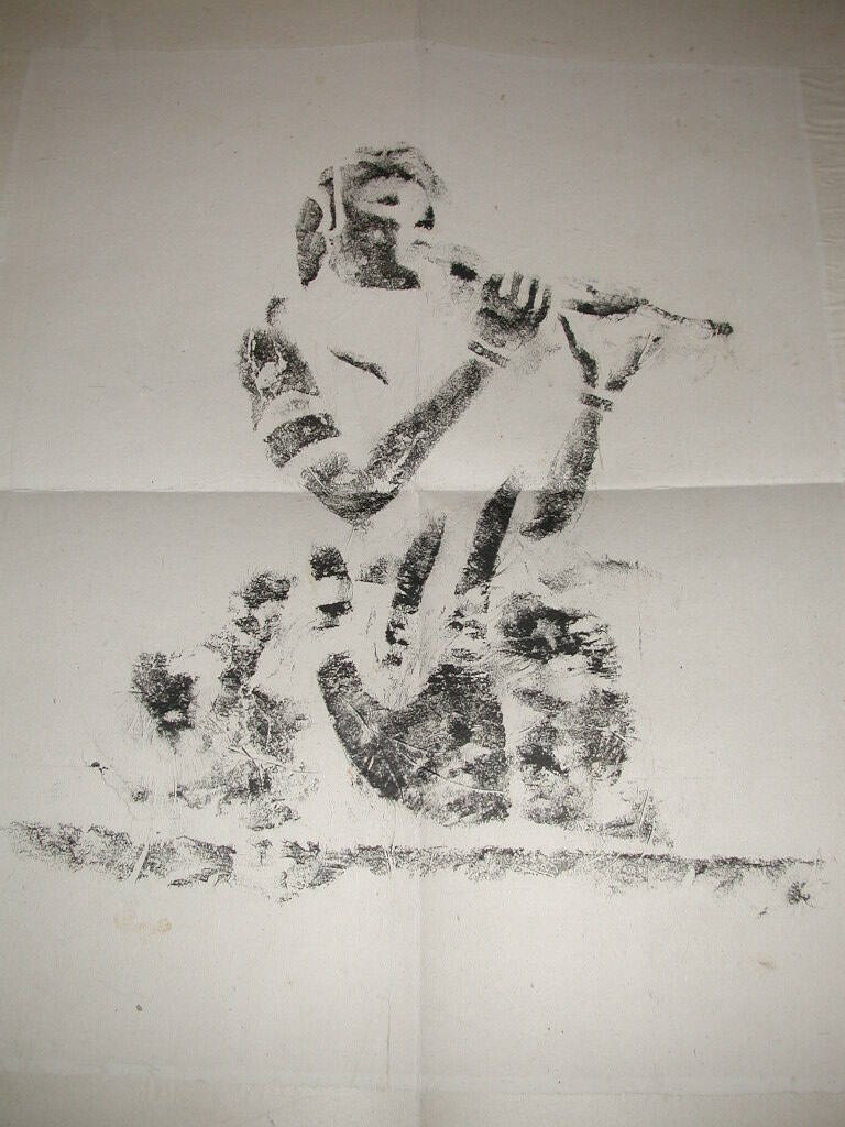 DescriptionFigure playing a wind instrument. "Kung Hsien". Rubbing taken from Kung Hsien (Gong Xian) caves.