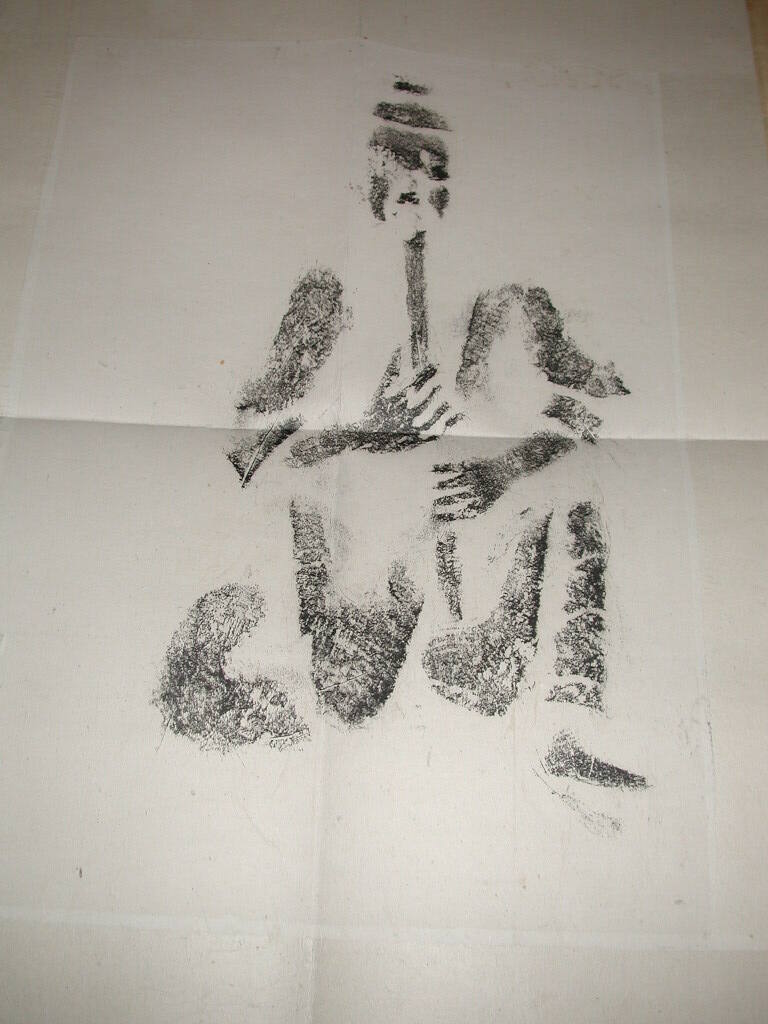 DescriptionFigure playing a long horn instrument. "Kung Hsien". Rubbing taken from Kung Hsien (Gong Xian) caves.