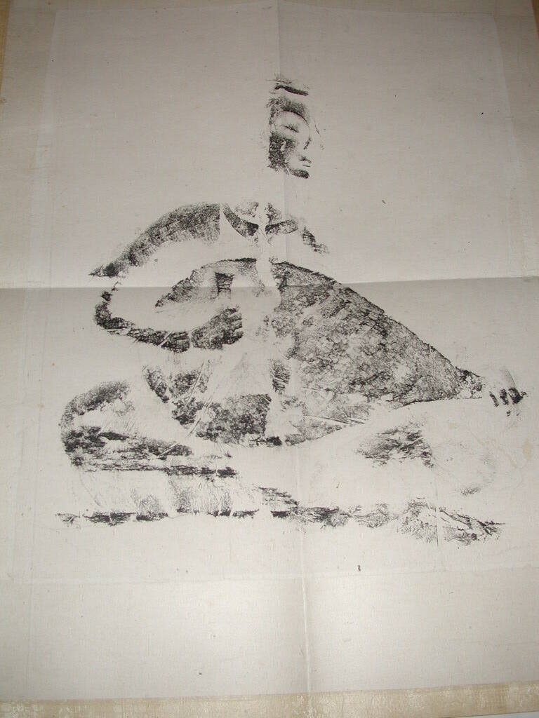 DescriptionFigure playing a string instrument (guitar or mandolin?). "Kung Hsien". Rubbing taken from Kung Hsien (Gong Xian) caves.
