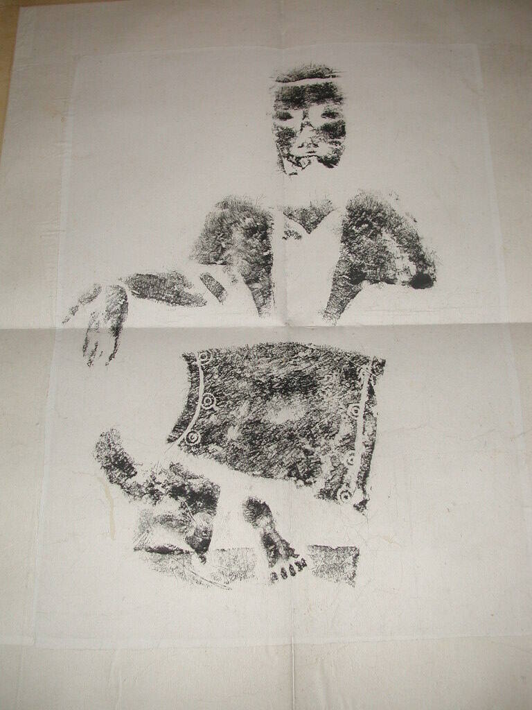 DescriptionSeated figure with object in lap. "Kung Hsien". Rubbing taken from Kung Hsien (Gong Xian) caves.