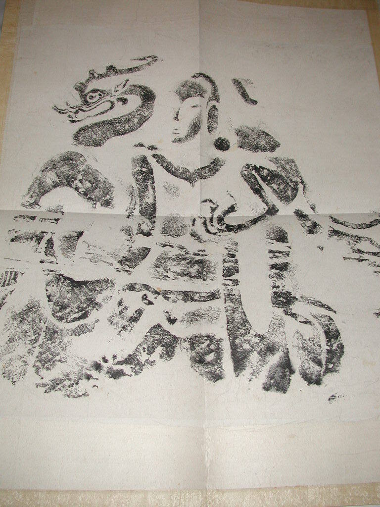 DescriptionFigure with dragon above proper right shoulder. "Kung Hsien". Rubbing taken from Kung Hsien (Gong Xian) caves.