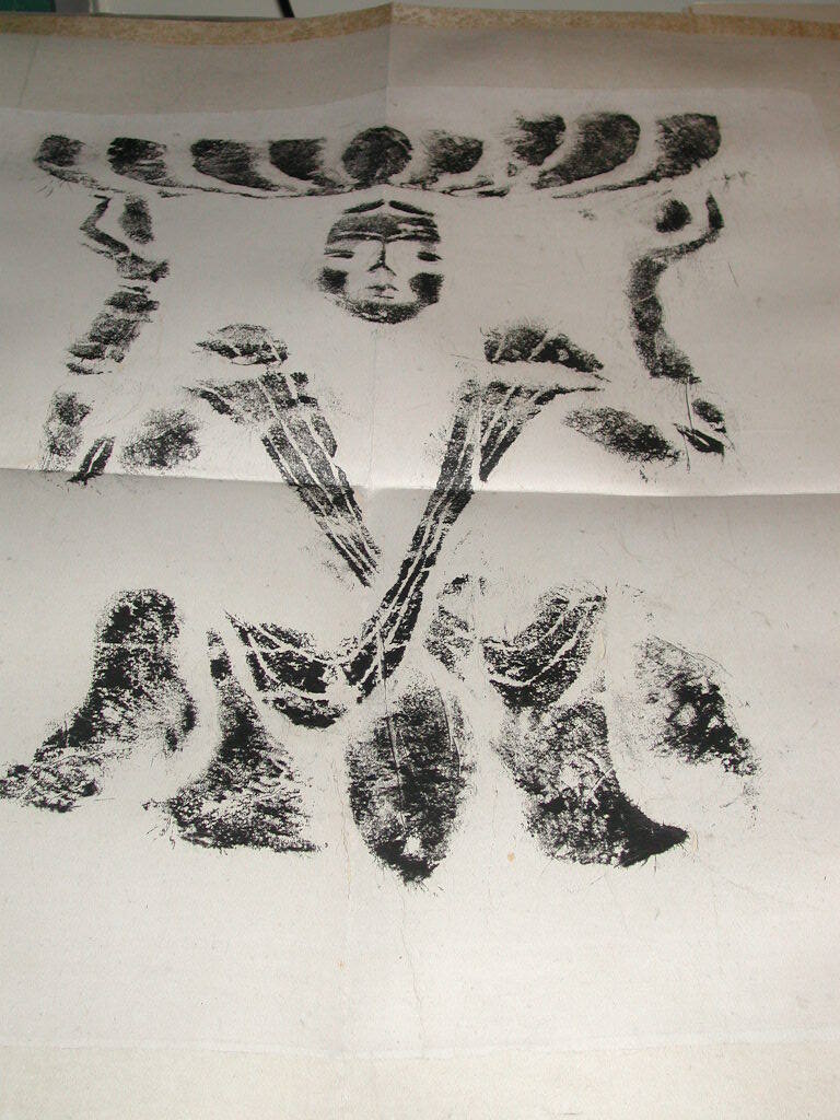 DescriptionMale figure with basket on head. "Kung Hsien". Rubbing taken from Kung Hsien (Gong Xian) caves.