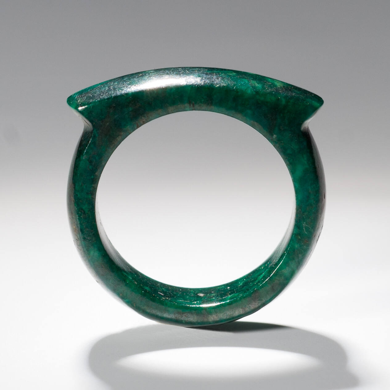 DescriptionRing carved from Narwhal bone in the shape of a stirrup.