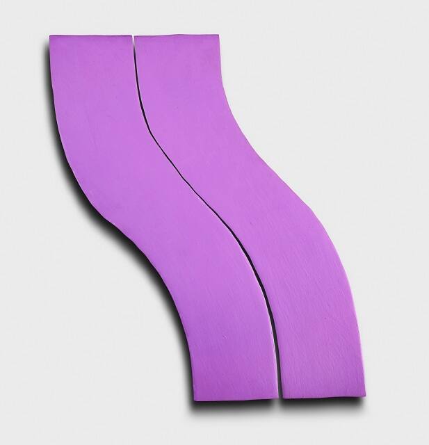 DescriptionThis painting is a shaped canvas. The work is vertically bisected into two equal components by a line that runs parallel to the configuration of the canvas. It is painted in a solid, uniform violet color.Exhibition HistoryWater, Harmony and Angst, The Pulitzer Foundation for the Arts, St. Louis,