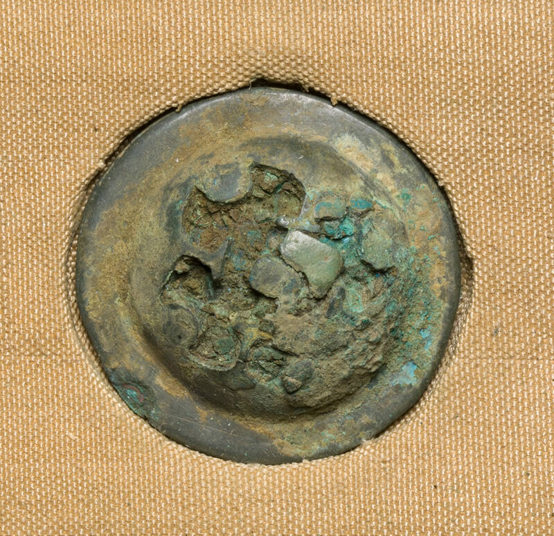 DescriptionOne of twenty-one bronze chariot ornaments, with a green patina.Provenance