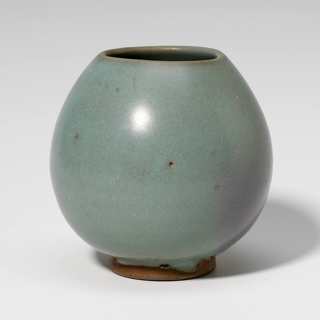 DescriptionOvoid shape vase with foot, greyish turquoise blue glaze with traces of lavender showing through. ware.ProvenanceWith Otto Burchard, Peiping (modern-day Beijing), China, by 1932;
