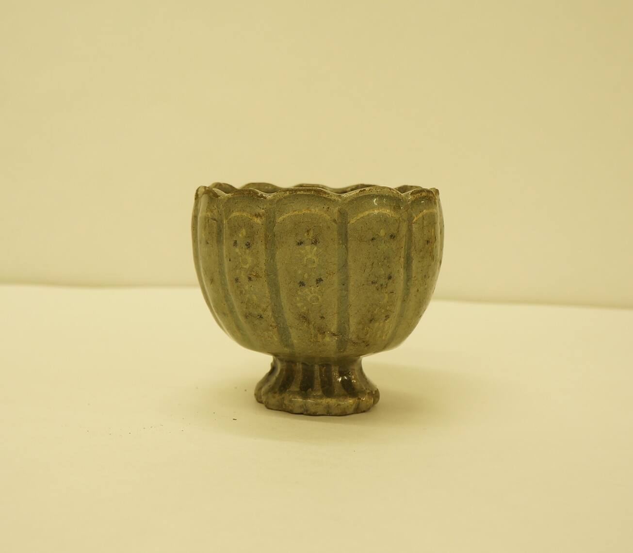 DescriptionSmall lobed cup with cusp cup and stylized chrysanthemum decoration. Light gray stoneware with black and white slip.ProvenanceWith Mr. Havashi, Kyoto, Japan, by November 30, 1933;