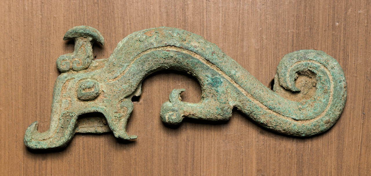 DescriptionDragon in abstract design, facing right, light green patina.ProvenanceT'ang Hsiao Wu, Peiping (modern-day Beijing), China, by March 30, 1934;