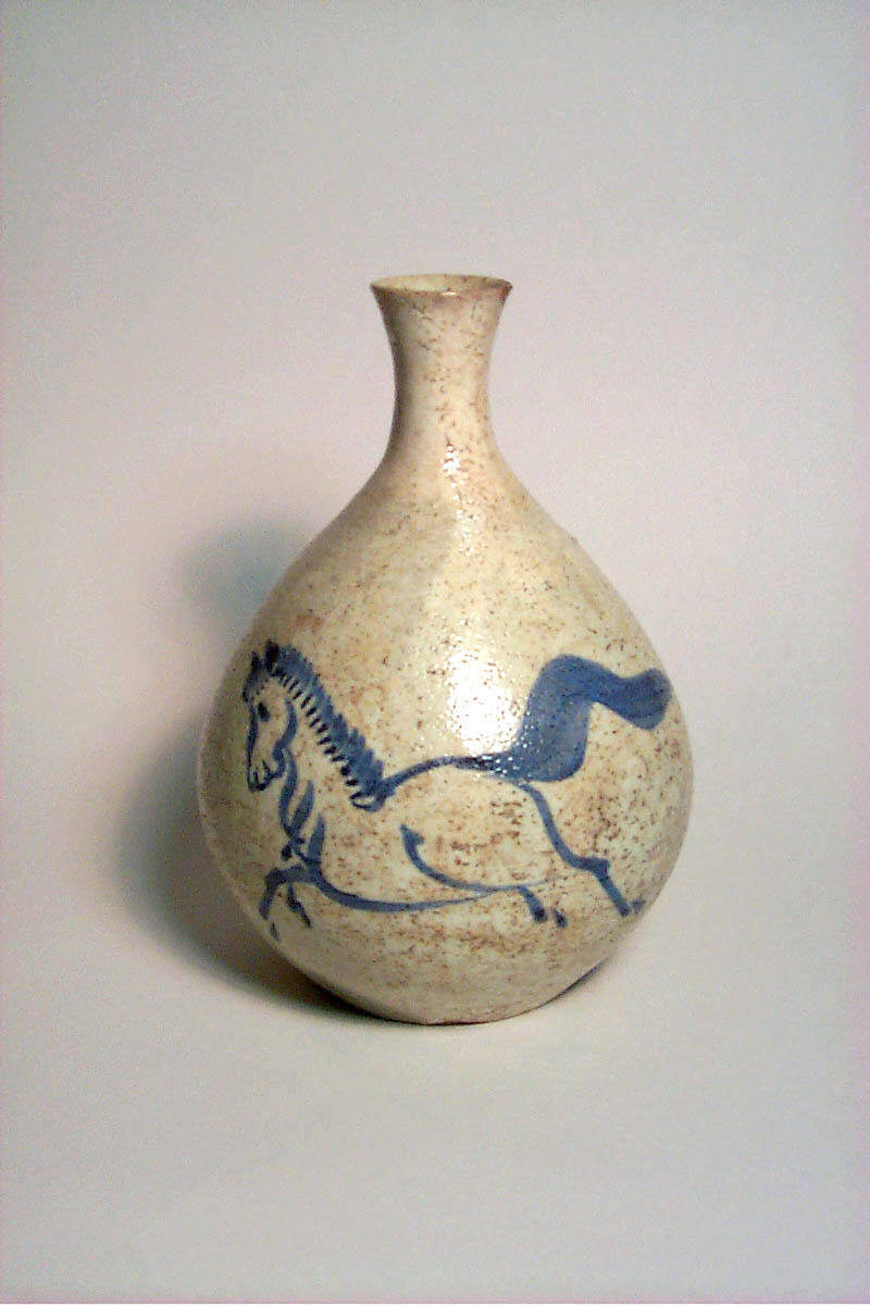 MediumStoneware with white glaze and underglaze blue with horse and poem design (Soma ware)