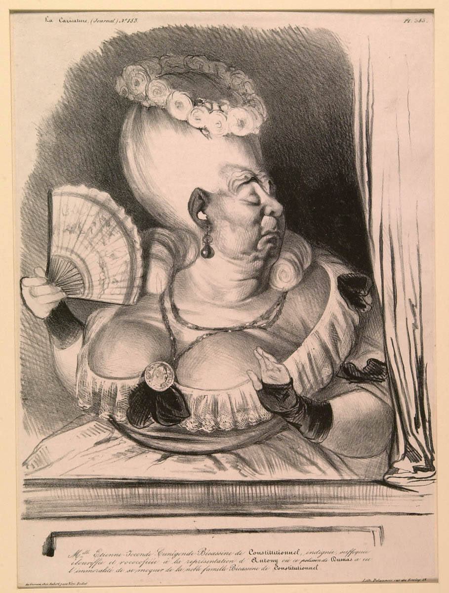 George L. McKenna, Prints, 1460-1995 (Kansas City, MO: Nelson-Atkins Museum of Art, 1996), 296, as Miss Etienne Joconde...Bécassine de Constitutionnel....
