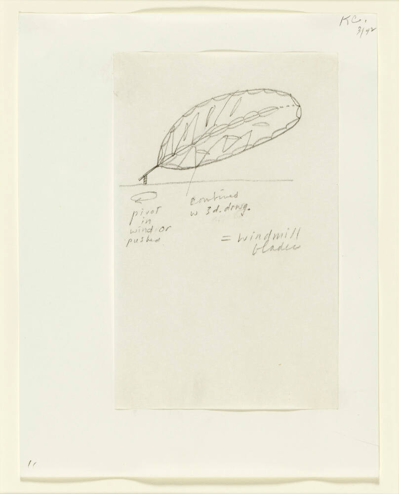 Notebook Page: Study for a Sculpture in the Form of a Feather--"Windmill Blades"