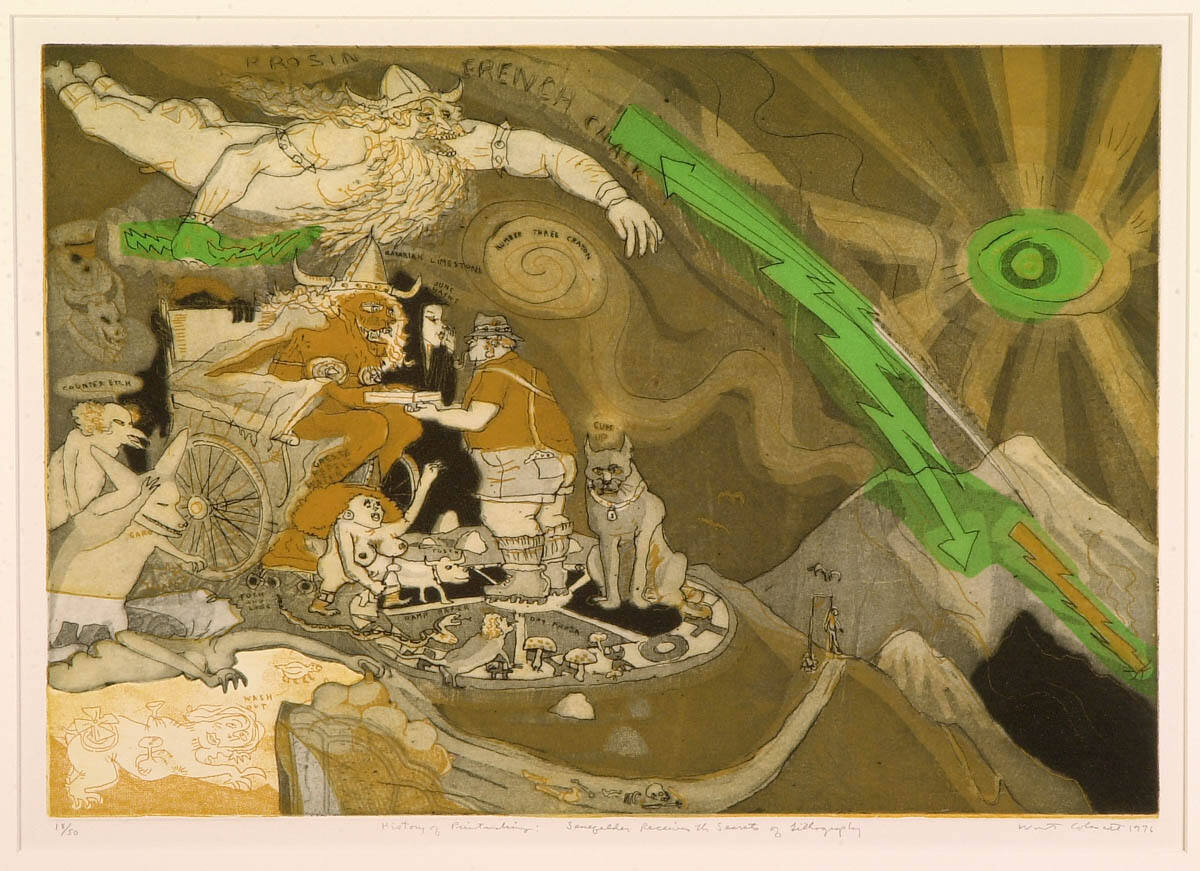 Signed(recto, pencil): "18/50 Senefelder Receives the Secrets of Lithography"