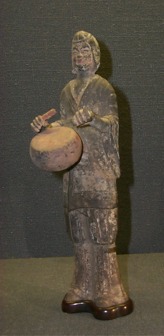DescriptionOne figure from a group of eight figures of a military band. Figure is playing a drum. Attached to a wood base.Provenance