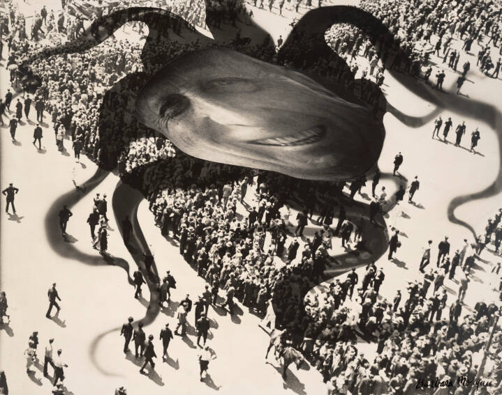 DescriptionAerial view of a large crowd of people in a public space. Imposed over the crowd is a floating smiling face (William Randolph Hearst) with mutliple dark tentacle-like appendages.Exhibition HistoryAmerican Photography: Recent Additions to the Hallmark Photographic Collection. The Nelson-Atkins Museum of Art, Kansas City, MO, February 27 – May 14, 2000, no cat.