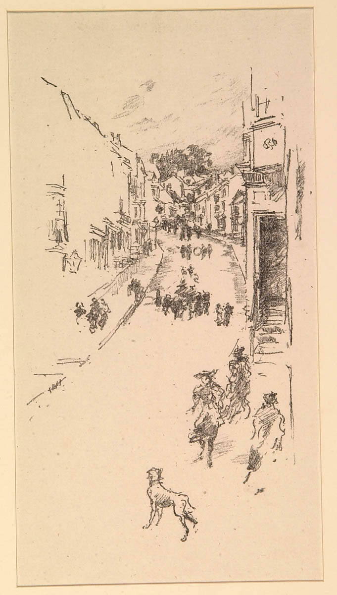 Gallery LabelIn his Lyme Regis images, James Abbott McNeill Whistler created a portrait of a place. He drew in the town’s streets, and at times, the damp sea air threatened the images he was creating. After three months working in the coastal resort town, he felt he had absorbed the place. Whistler wrote, “Having eagerly desired to live in Lyme for a thousand years, and having had that desire gratified to the uttermost, I now am satisfied—and am willing to leave Lyme—desiring indeed never to set eyes upon it again—I long for Lyme no more!”