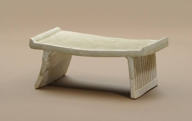 DescriptionA miniature table with turned-up ends raised on splayed slotted supports.ProvenanceJ. J. Lally & Co.;