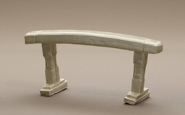 DescriptionA miniature narrow cushion-shaped oblong armrest on trestle supports.Provenance