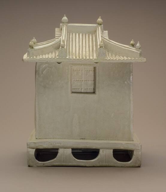 DescriptionA miniature block-shaped model of a storehouse on openwork platform base with a small recessed door under the removable "tiled" roof with multiple lotus bud finials.ProvenanceJ. J. Lally & Co.;