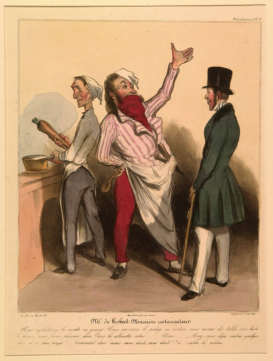 George L. McKenna, Prints, 1460-1995 (Kansas City, MO: Nelson-Atkins Museum of Art, 1996), 295, as Caricaturana (Les Cent Robert Macaire): Mr. de Robert Macaire, Restaurateur.