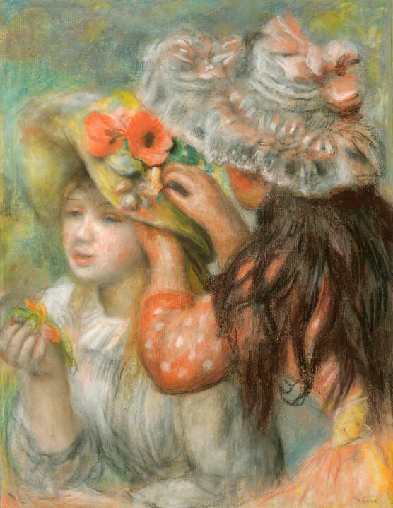Aquarelles, pastels et dessins par Renoir (1841-1919), exh. cat. (Paris: Galeries Durand-Ruel, 1921), unpaginated, as Jeunes filles arrangeant un chapeau.