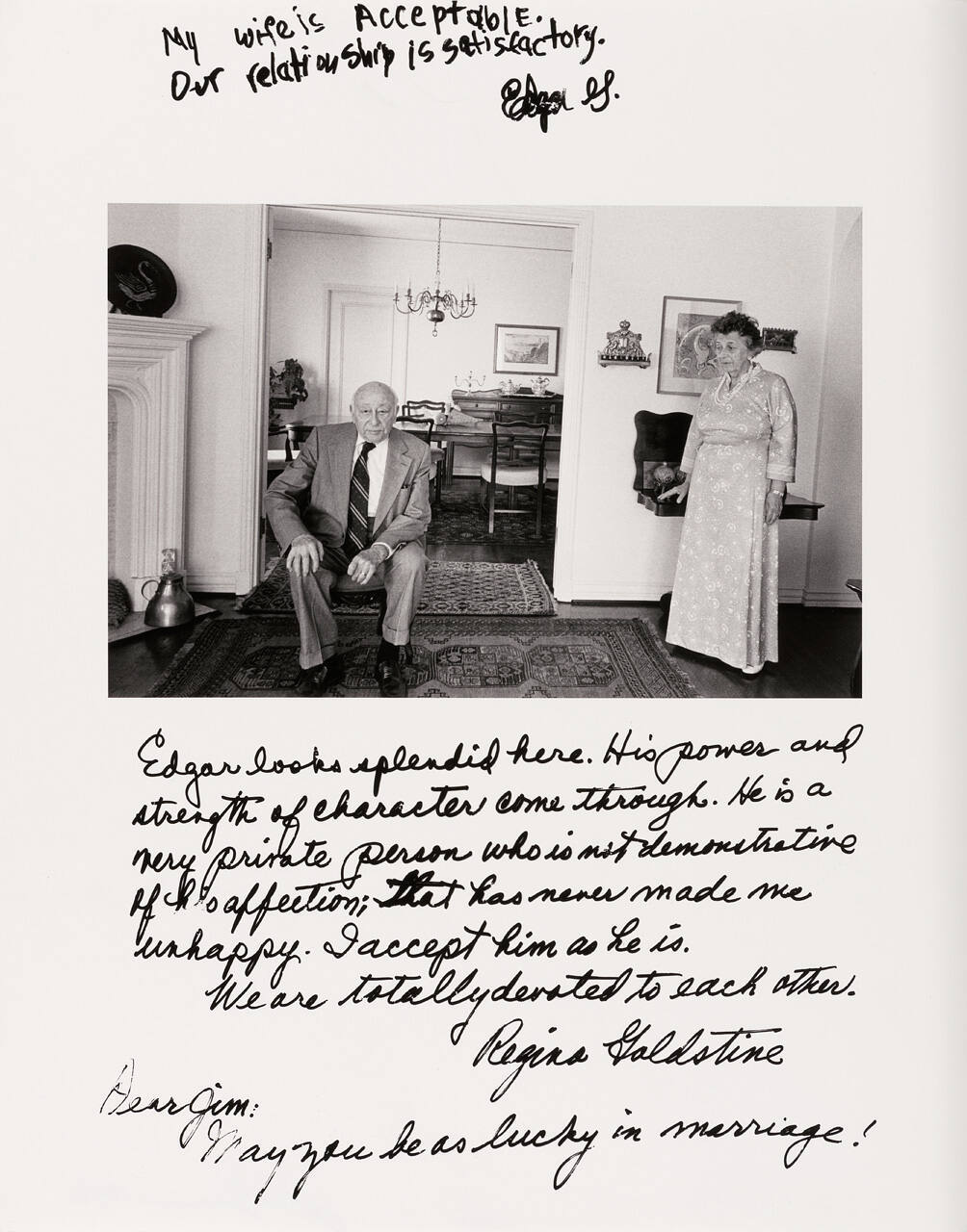 For his series Rich and Poor, which includes this portrait, Goldberg photographed people at both ends of the social spectrum. In this instance, the accompanying texts, written separately by a wealthy husband and wife, suggest not only how they view one another, but also how they perceive their marriage, allowing the viewer to infer the communicative disjuncture that occurs within that relationship.