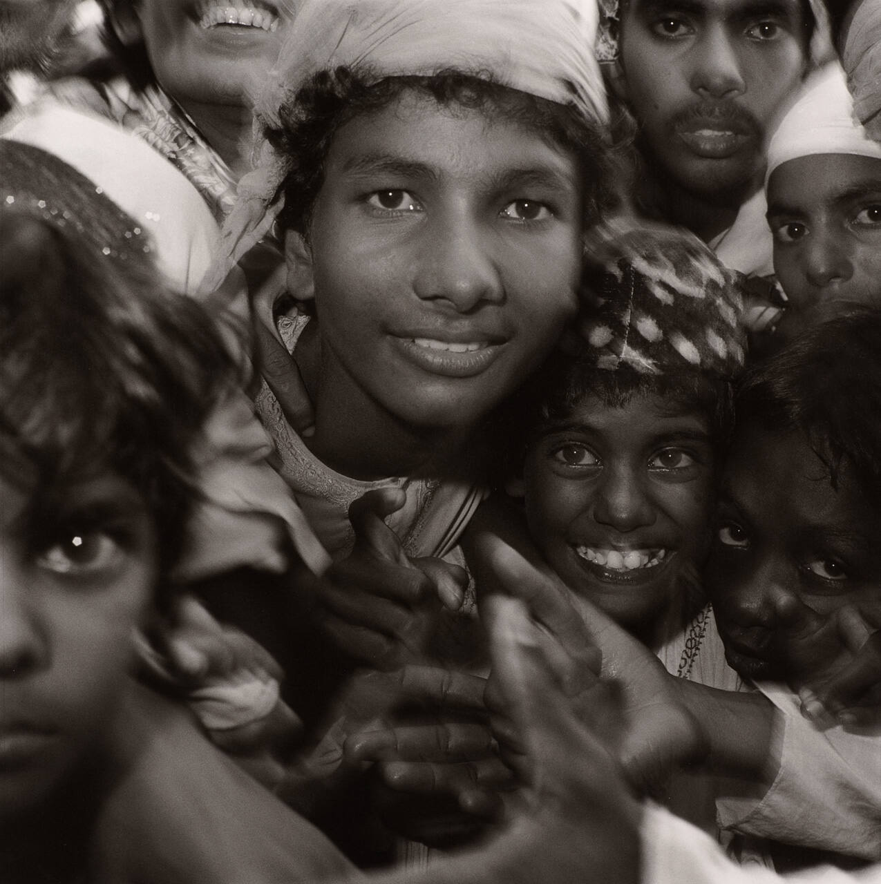 DescriptionGelatin silver print of Muslim boys in India. Signature on back of print.