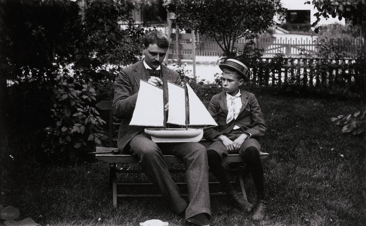 Connecticut or N.Y. State, Man and Boy with toy sailboat