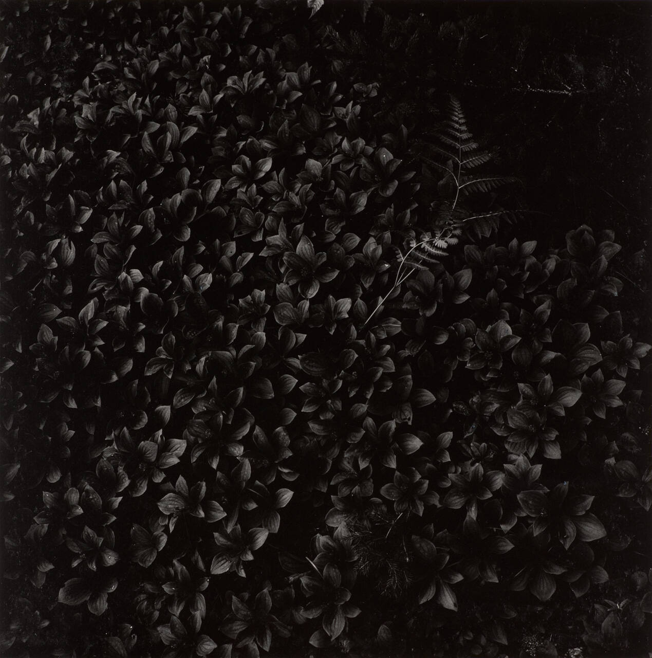 DescriptionImage of a dense patch of dark foliage with a single leafy branch near the upper right corner of the frame.Copyright© The Estate of Harry Callahan. Courtesy Pace Gallery, New York.