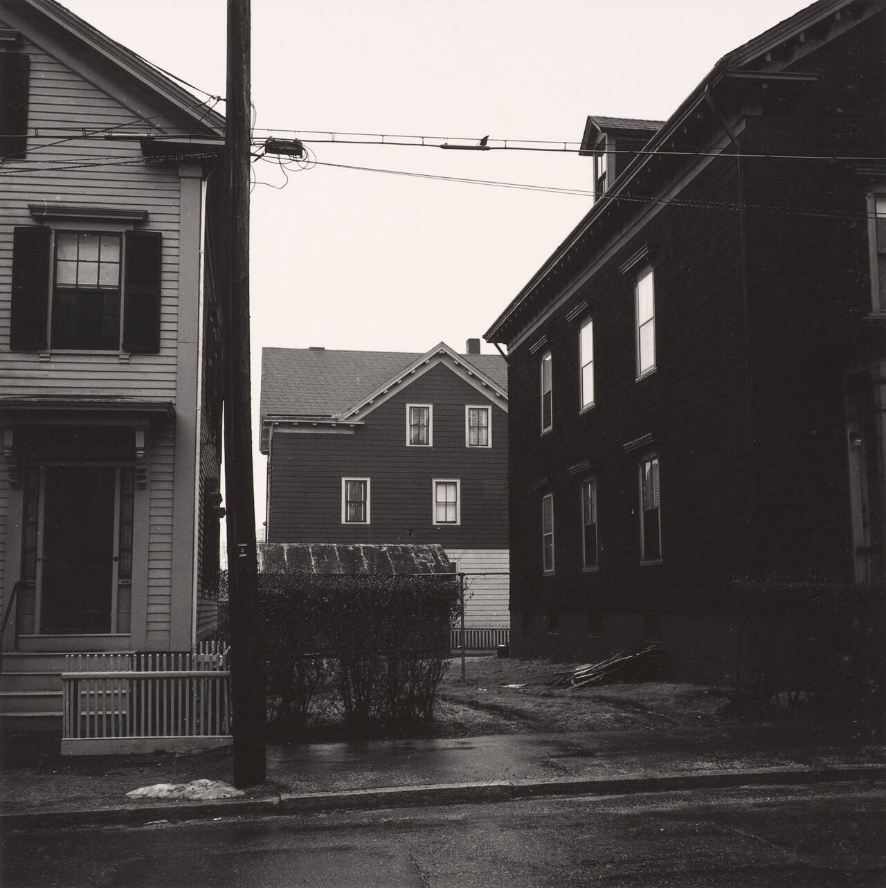 DescriptionImage of two houses with a grassy area between them and a sidewalk in front.Copyright© The Estate of Harry Callahan. Courtesy Pace Gallery, New York.