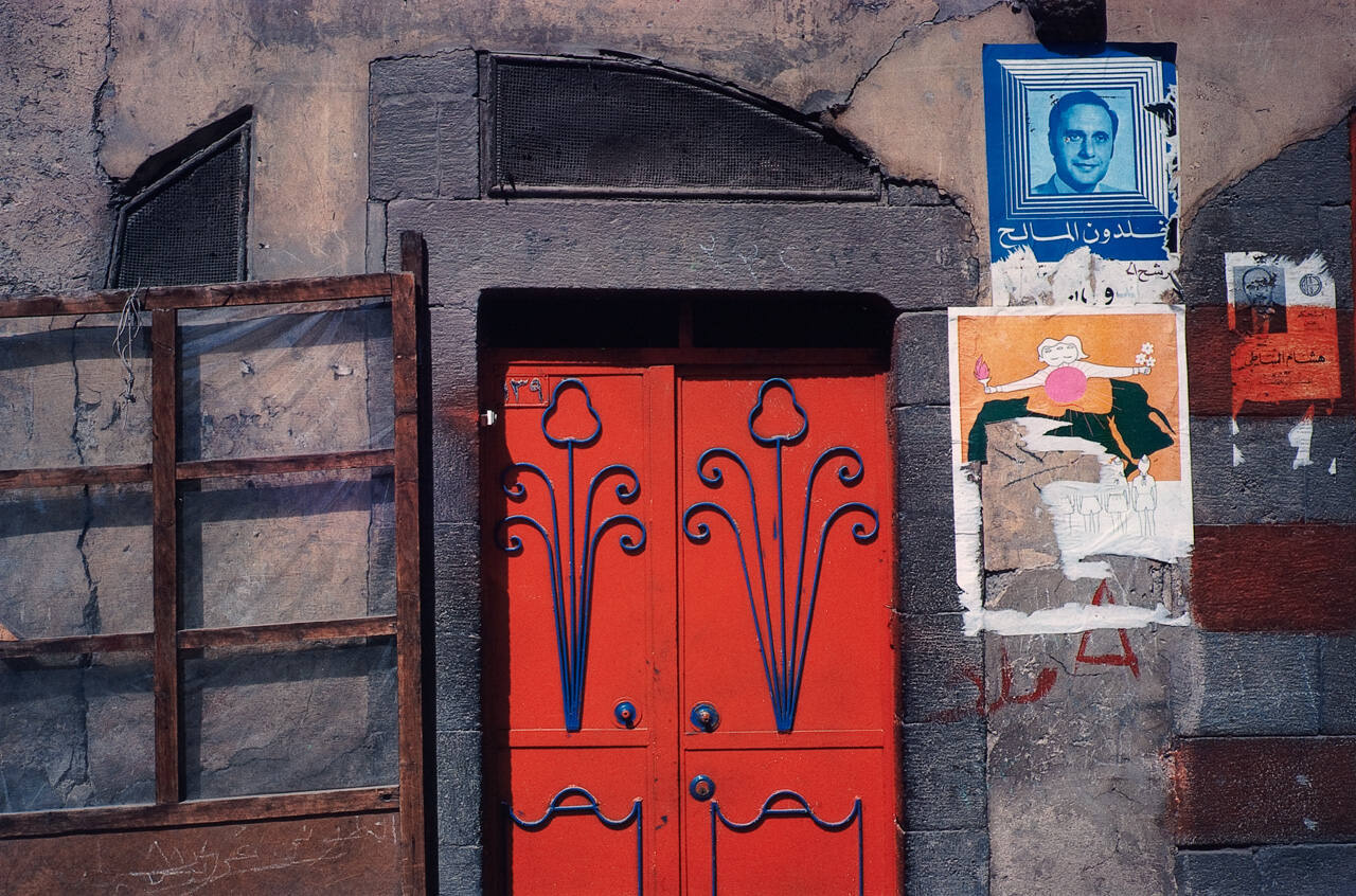 DescriptionImage of a stone building facade with bright red doors decorated with blue details. There are various weathered signs with Arabic lettering to the right of the doors.Gallery LabelThough better known for his black-and-white prints, Harry Callahan also worked in color throughout his career. He used it exclusively during the last two decades of his life. Freed from the darkroom, Callahan exposed film but did not print these photographs. Instead, he worked with a professional lab to produce works of stunning chromatic range. In this Egyptian street view, Callahan crafted a dynamic formal interplay between bold, saturated hues and subdued, layered tones.