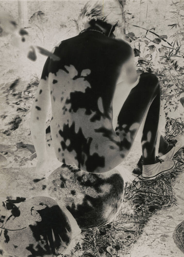 For this photograph, László Moholy-Nagy reversed the expected tonalities of the image. The shadow of the leaves appear here as light against the woman’s dark back. In this way, the image shows the play of light and dark that is fundamental to making photographs.