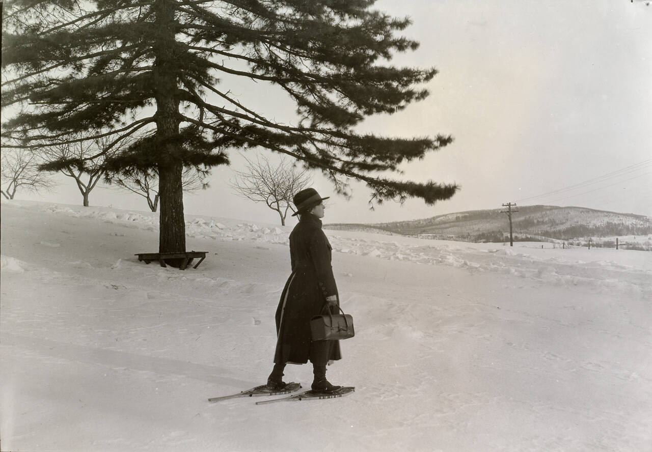 InscribedOn sheet verso, center, in pencil: "R.C. Nurse in N.J. on Snow / Shoes / Ramapoe Mtns."