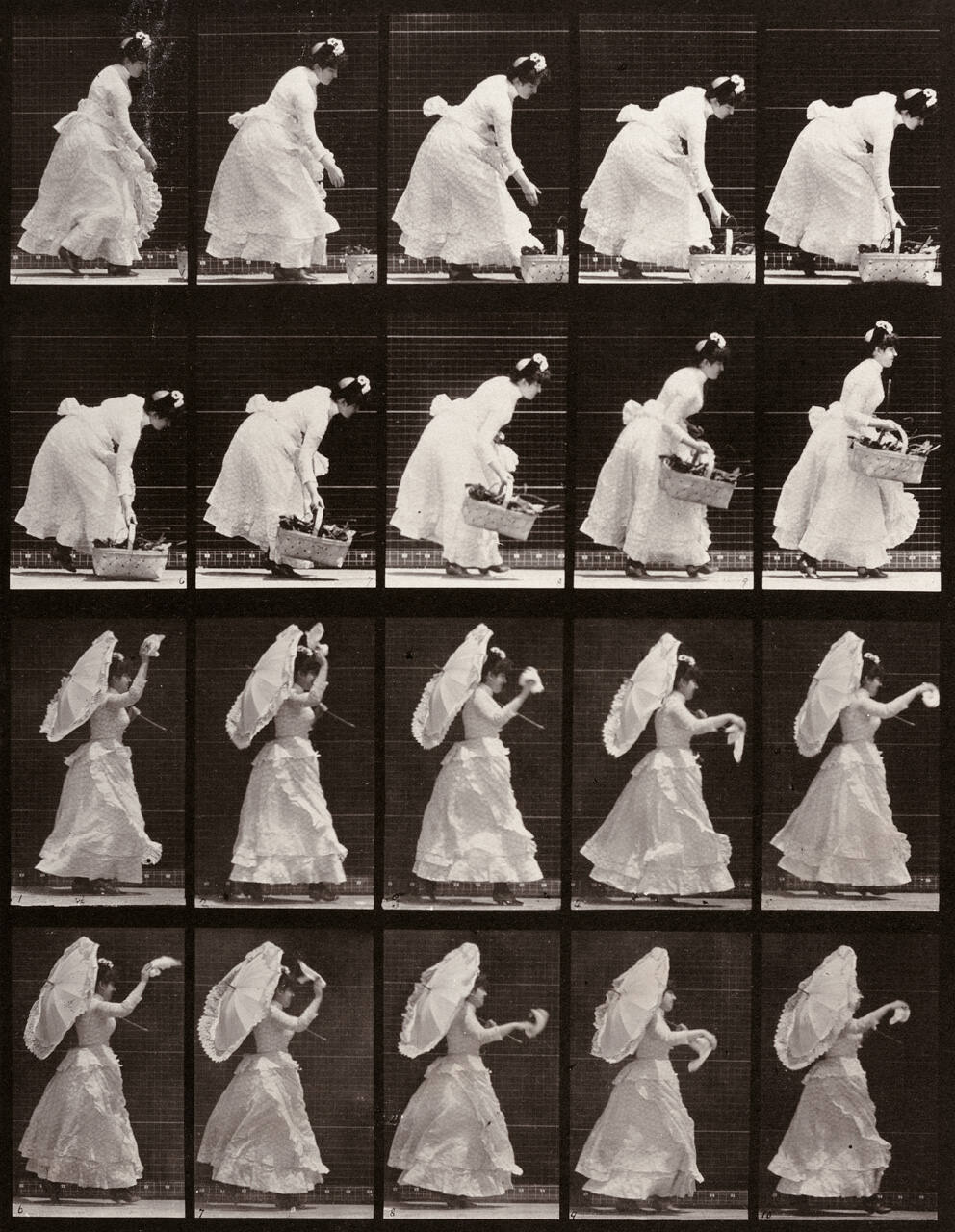 A. Lifting a basket. B. Running and waving a handerchief (Plate 483)