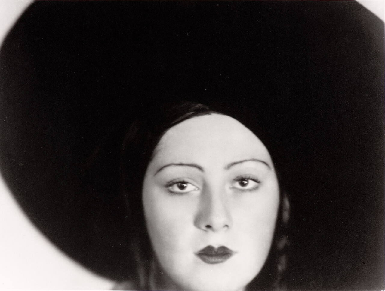 In 1920s and 1930s Berlin, Lotte Jacobi was celebrated for her striking portraits of politicians, theatrical stars, and dancers. As seen in this image, Jacobi’s works were markedly modern. Here, she crafted a simple geometric composition in which the dark round brim of the dancer’s hat isolates and frames the oval of her face. Jacobi fled Berlin with her son in 1935 as the Nazi party rose to power. Settling in New York, Jacobi opened a studio and made portraits of many figures in the city’s cultural elite.