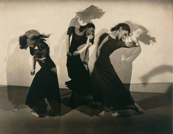 DescriptionMultiple exposure of a woman (Martha Graham) dancing in dark colored dress. Exhibition History