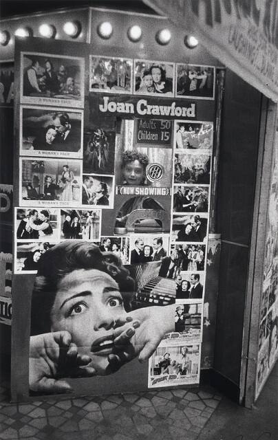 DescriptionImage of a woman seated in a ticket booth which is covered in movie posters and a sign which reads "Joan Crawford". A row of lightbulbs line the top of the frame.Gallery LabelThis photograph of a young ticket-taker, surrounded by a veritable collage of idealized Hollywood imagery, conveys a sense of individual loneliness and anonymity. A restless and rebellious spirit, Robert Frank left his native Switzerland in 1947 for New York City. Working with a small 35mm camera in a quick and candid manner, Frank made entirely personal images. Like the Beat poets and jazz musicians of the time, he sought a raw, intuitive, and deeply human kind of expression.