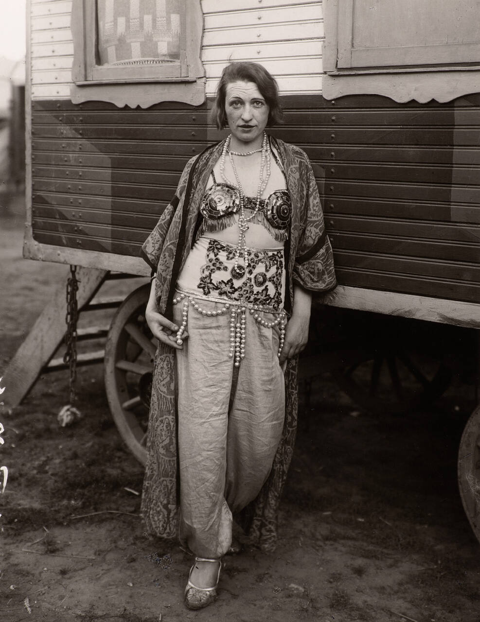 DescriptionPortriat of a woman wearing harem pants with an ornate waist line and a fringed bra under an open decorative robe. She is leaning against a circus wagon.Exhibition HistoryNew Acquisitions to the Hallmark Photographic Collection 1980-1983. The Nelson-Atkins Museum of Art, Kansas City, MO, April 1 - May 1, 1983.