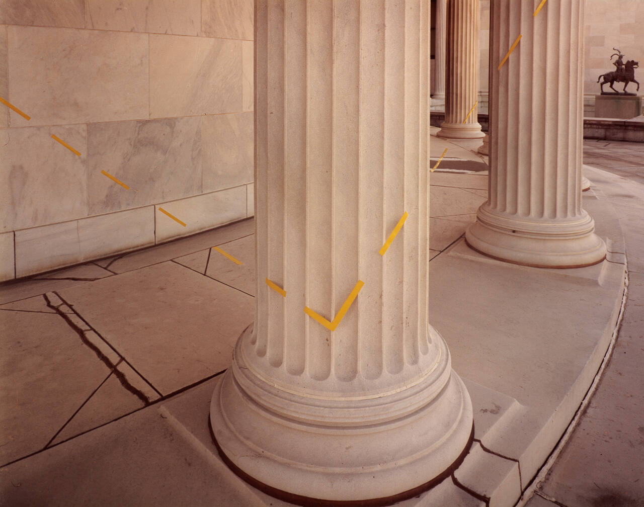 DescriptionImage of a series of round columns with a dashed yellow line in the form of a right angle over the column in the foreground.Exhibition HistoryNew Acquisitions to the Hallmark Photographic Collection, 1980-1983. The Nelson-Atkins Museum of Art, Kansas City, MO, April 1 – May 1, 1983.