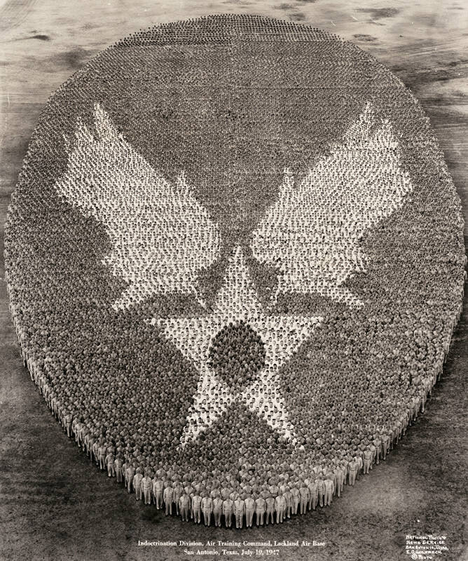 InscribedOn image recto, bottom, in negative: "Indoctrination Division, Air Training Command, Lackland Air Base / San Antonio, Texas, July 19, 1947"