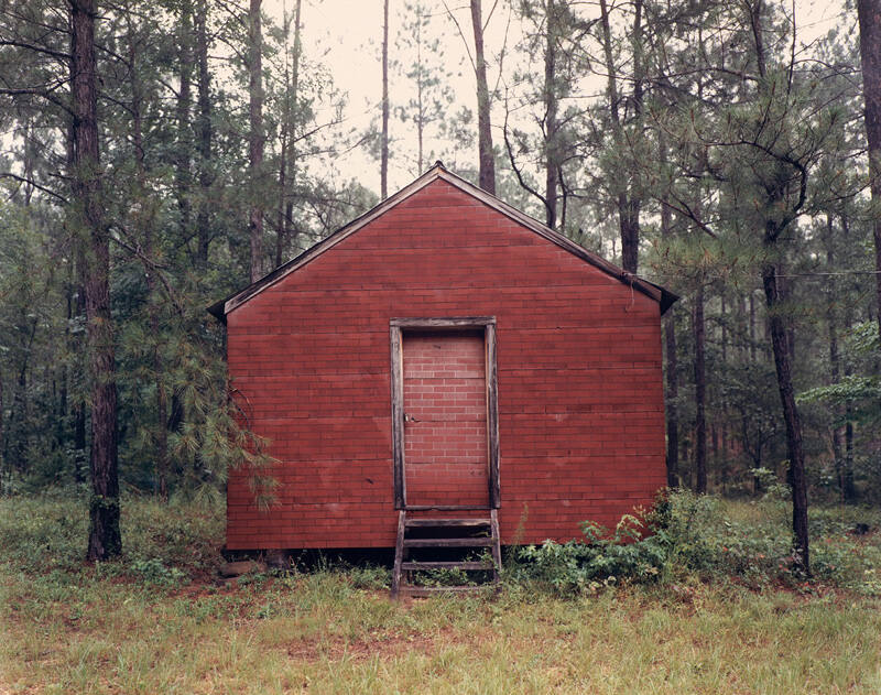 InscribedOn sheet verso, bottom, in blue pen: "RED BUILDING IN FOREST, HALE COUNTY, ALABAMA, 1983 PRINTED 1985 EKTA-PRO".