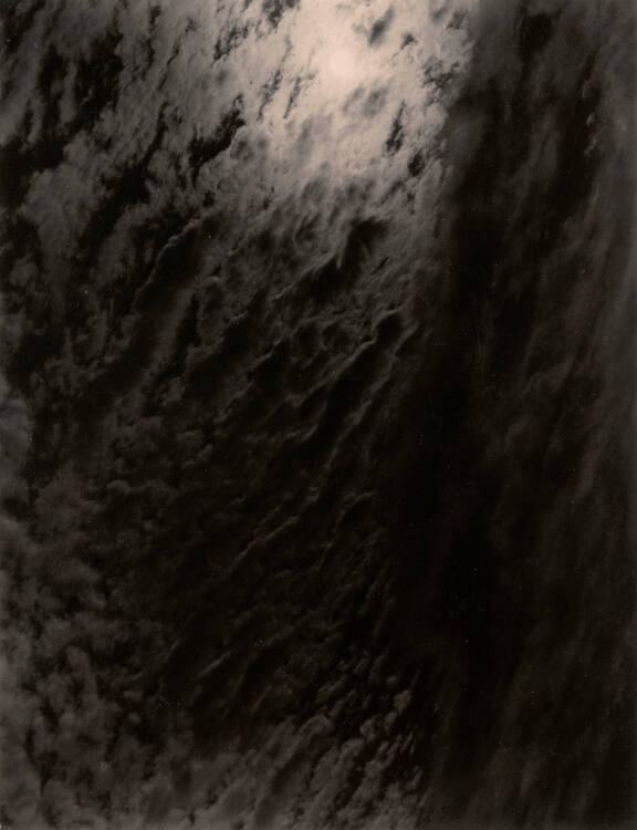 Alfred Stieglitz began photographing clouds in 1922. Over the next eight years, he produced a total of about 350 images for his Equivalents series. Stieglitz’s notion of “equivalence” rested on the use of familiar subjects as symbols of inner thoughts and emotions. Here, the shapes and tones of the clouds act as metaphors for the human condition.