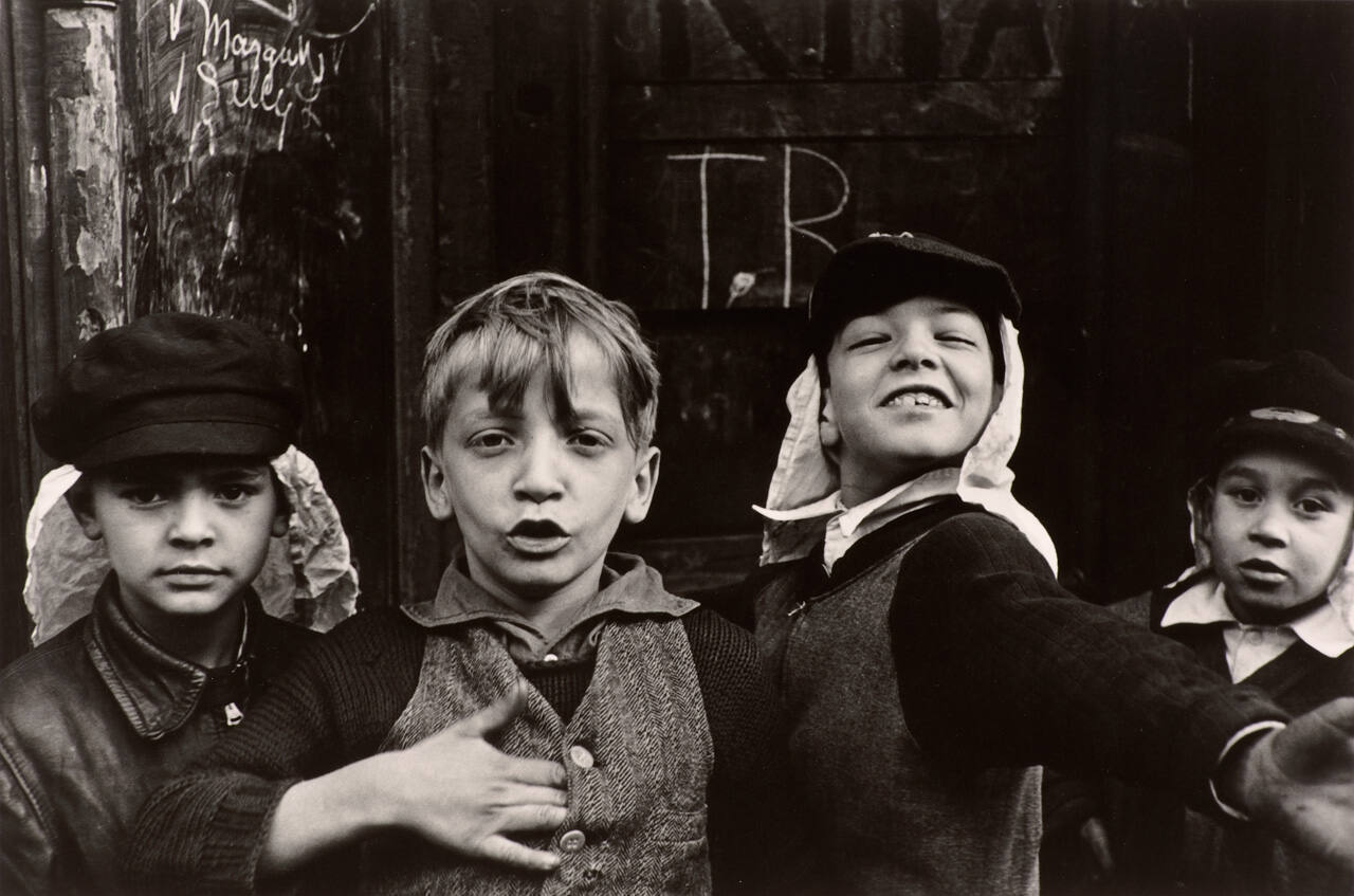 DescriptionGelatin silver print of boys in the streets of NY. Signature on back of print.