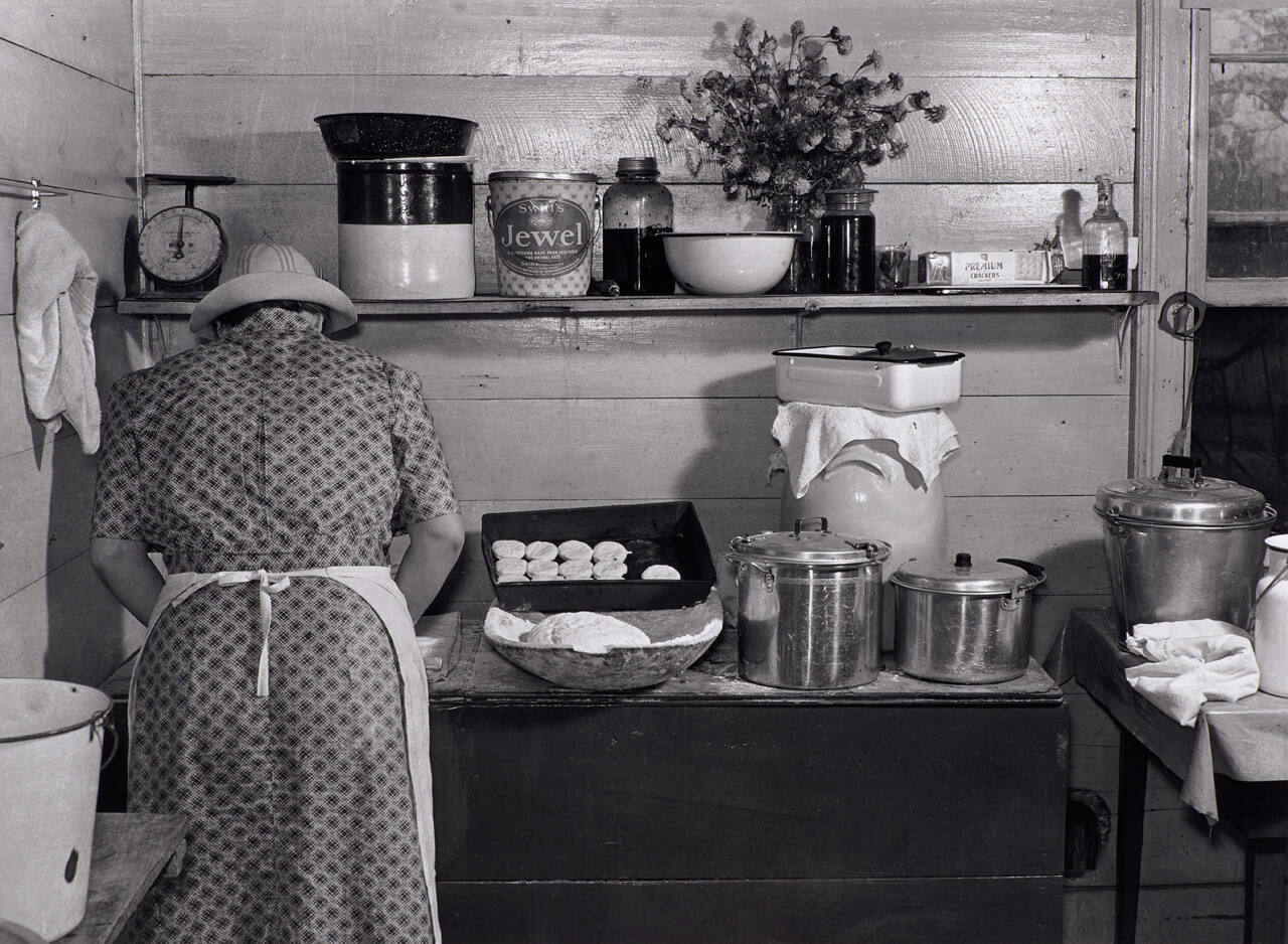 DescriptionImage of a woman (from back) working in her kitchen.Exhibition HistoryDignity vs. Despair: Dorothea Lange and the Depression Era Photographers, 1933-1941. The Nelson-Atkins Museum of Art, Kansas City, MO, June 23 – November 26, 2017, no cat.