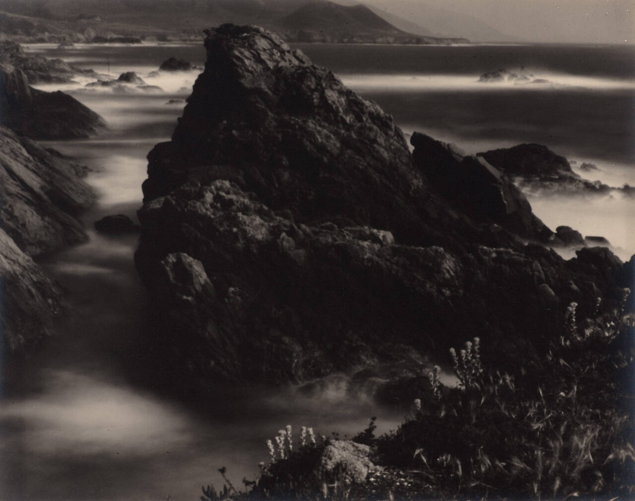 InscribedOn mount verso, center, in black pen: "Pin-hole / Monterey Coast";