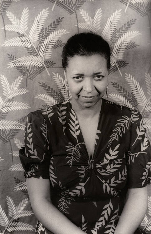 DescriptionImage of a woman with a gentle smile wearing a short-sleeved dress with a fern pattern; a similar pattern is repeated on the wall behind her.Exhibition HistoryAmerican Art Deco: Designing for the People, 1918-1939, The Nelson-Atkins Museum of Art, Kansas City, Missouri, July 9 2022–January 8 2023, no cat.