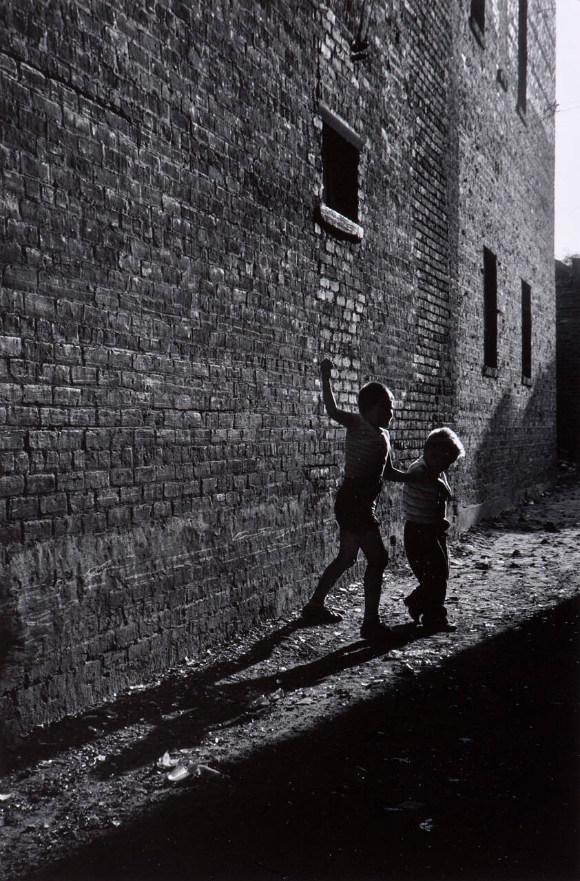 DescriptionVintage gelatin silver print of two children fighting in an alley. Notations in pencil on back of print. Signature on front of print.ProvenanceThe Collected Image, Evanston, IL;