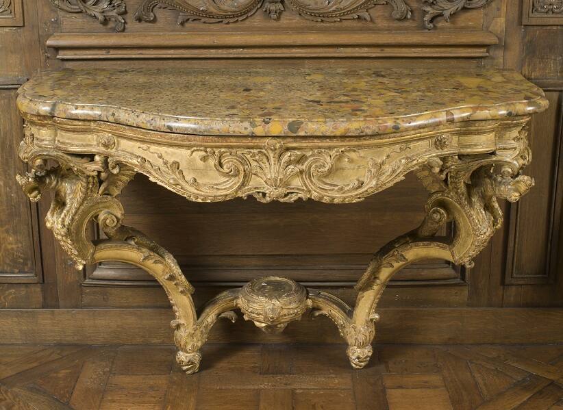 DescriptionRegence console of gilded sculptured wood.ProvenanceWith Charles Michel, Paris, by October 1932;