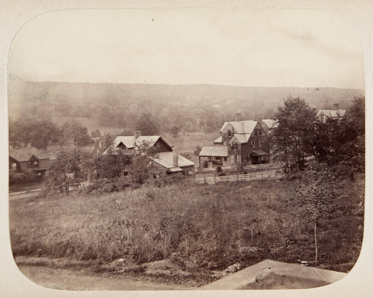 Description: "Monday, June 15, 1887. "Shain's barn" moved down to Vose Avenue and changed to a dwelling house. Tip of lamp-post seen above edge of veranda."