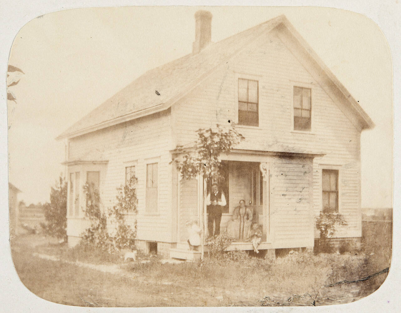 Description: "Aug. 1881. One of the first photos. "Marnie dear" is shown (the cat). Leavitt."