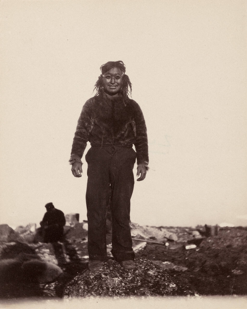 DescriptionVintage albumen print on card mount. Image of a standing man.
